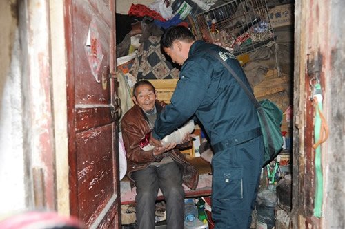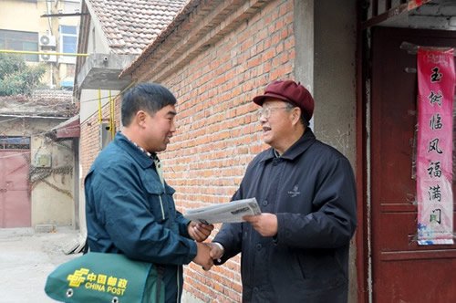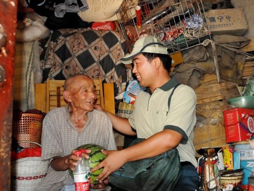 在訂戶眼中,張軍是個有名的“熱心腸”。在他負(fù)責(zé)的片區(qū)里,有一位早年喪偶的孤寡老人——邰連科,老人已經(jīng)70余歲,靠低保和撿破爛為生,雖然他不是張軍的報刊訂戶,但是看到老人孤獨的身影,一種憐憫之心油然而生。于是他就成了老人的“義務(wù)志愿者”,每天路過老人家門口,他都要停下匆匆的腳步,看一看老人的生活狀況,還自掏腰包為老人買點水果,帶點米面。每次提起張軍,老人都感動地說:“我沒有兒子,上天卻為我?guī)硪晃挥H人。”這件事,張軍已經(jīng)做了2年,他用自己的愛心鋪就了一條特殊的郵路。