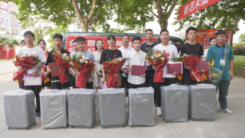 一大早,徐會超就懷揣著激動的心情趕到了郵政公司。消殺郵件后,徐會超與工作人員帶著鮮花與祝福和錄取通知書,來到了上蔡縣第一高級中學(xué)。在經(jīng)過雙證核實、簽字、拍照等一系列簽收手續(xù)后,徐會超鄭重地把清華大學(xué)、北京大學(xué)錄取通知書送到7位學(xué)子手中,工作人員為他們送上上蔡縣郵政分公司特地準(zhǔn)備的拉桿箱和鮮花。上蔡郵政分公司總經(jīng)理翁斌、副總經(jīng)理原芳為考生們送去郵政了真摯的祝福。