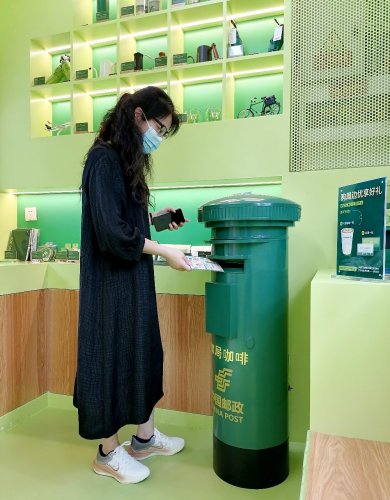 顧客在“郵局咖啡”投寄明信片。