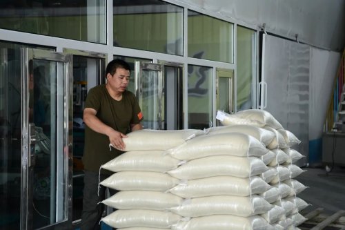 在金凱樂米業(yè)有限公司,5家合作社的糧食都送到這里進(jìn)行加工,生產(chǎn)線一刻不停地運(yùn)轉(zhuǎn),“一人一天至少搬3000袋吧,有時(shí)候更多”。