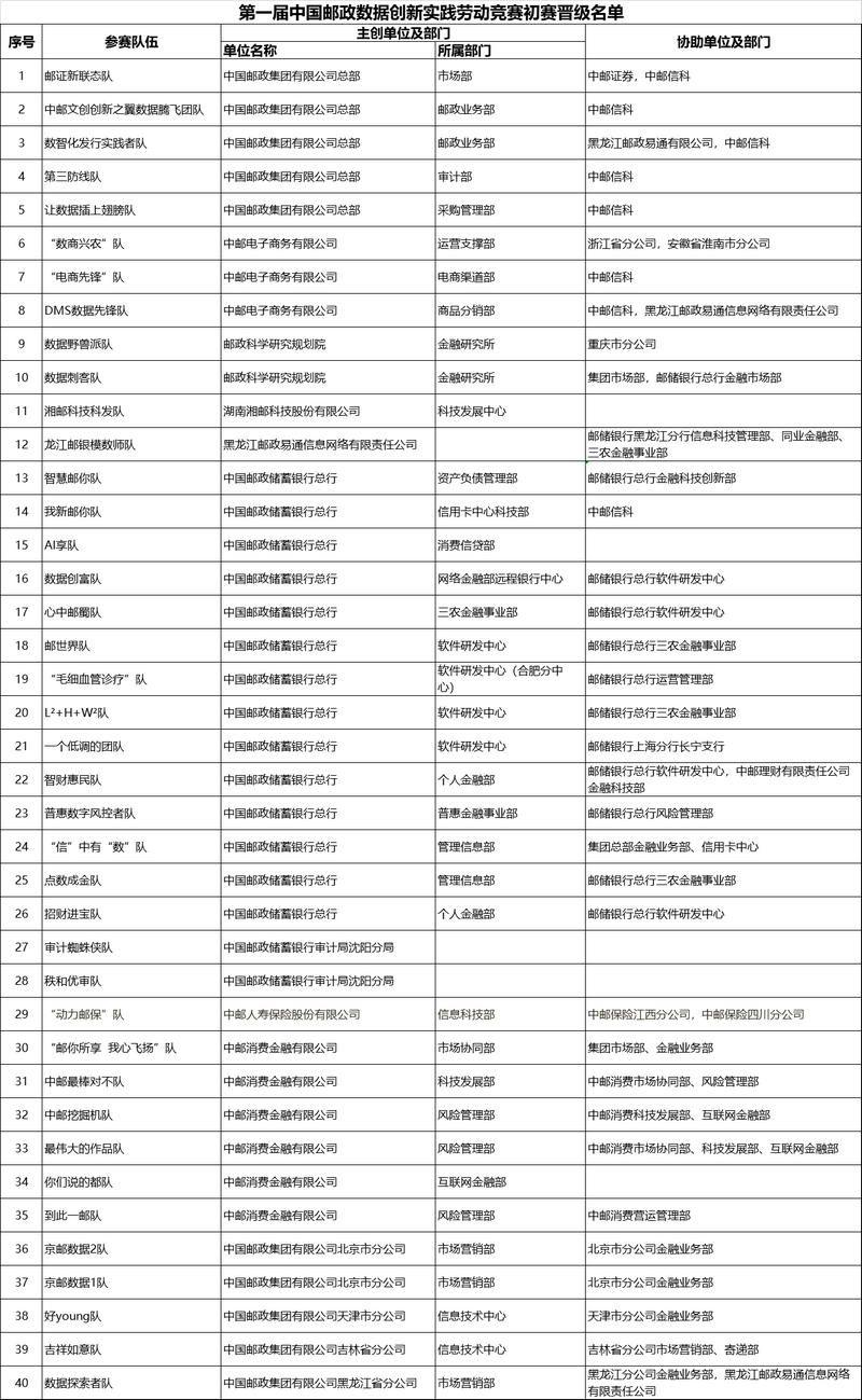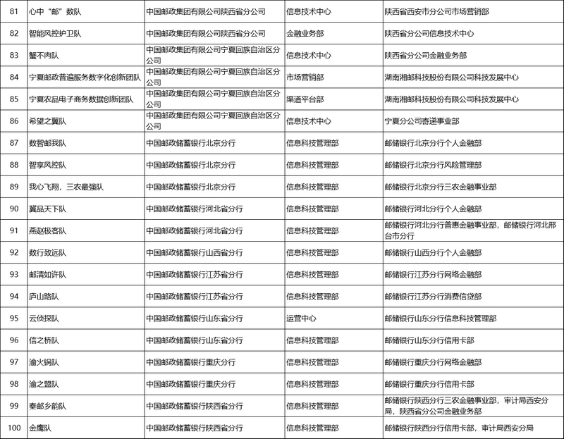 數(shù)據(jù)創(chuàng)新實踐勞動競賽通過比拼大數(shù)據(jù)分析技術(shù)在實際業(yè)務(wù)場景的數(shù)據(jù)賦能效果,激發(fā)了各級團隊的大數(shù)據(jù)工作熱情。初賽系列賽事活動的組織推進,快速提升了參賽隊伍數(shù)據(jù)分析、建模技術(shù)能力,拓寬了參賽隊伍數(shù)據(jù)賦能思路,涌現(xiàn)出了一批能夠反映業(yè)務(wù)經(jīng)營實際、具有創(chuàng)新價值的研究課題,如直播選品、鏈式營銷、風險預警等。參賽隊伍以競賽為契機開展了跨專業(yè)、跨單位、跨板塊合作,深化了業(yè)技融合,在數(shù)據(jù)協(xié)同應(yīng)用上實現(xiàn)了有益探索。各級數(shù)據(jù)隊伍借助競賽的平臺優(yōu)勢,促進模型算法技術(shù)共享,發(fā)掘一批有創(chuàng)新、有價值、可落地的數(shù)據(jù)分析建模項目,形成規(guī)模效應(yīng),助力郵政數(shù)字化轉(zhuǎn)型和高質(zhì)量發(fā)展。