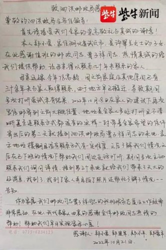 提及信中的內(nèi)容,鄭小愛說:“幾十年沒和舅舅見過面,很多話想說卻又不知道從哪兒說起,我在信中告訴舅舅,母親和我們姐弟四人現(xiàn)在過得都很好,信中還問了他的生活怎么樣,家里的孩子工作學(xué)習(xí)如何,最后留了我和弟弟的電話號(hào)碼,希望他看到信以后能跟我們聯(lián)系。”