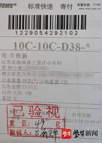 10月19日下午,郵遞員曹子祥像往常一樣,按照地址把一封封信件送到收信人手中。然而,一封信息不完整的信件讓他犯了難。收件人叫許維新,沒有電話號(hào)碼,地址為泗洪縣三里莊小許村。這里的村民早就已經(jīng)搬遷,以現(xiàn)有的信息,無法找到收件人。