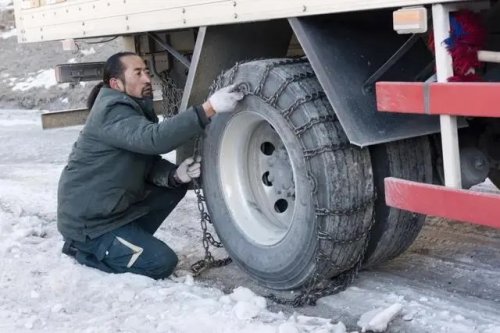 冰雪路上,其美多吉給汽車加掛鏈條