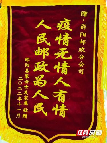紅網(wǎng):疫情無情“郵”有情,邵陽郵政收到一面錦旗贊初心來源:紅網(wǎng)   作者:記者 李慧芳 通訊員 李文   時間:2022-12-05