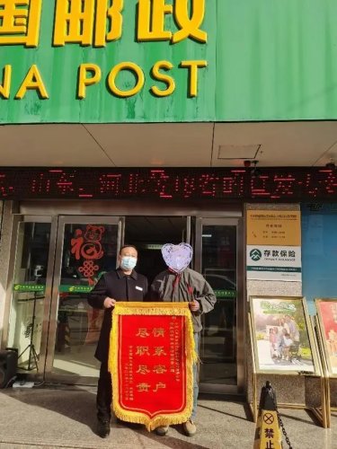 近日,駐馬店市平輿縣萬金店郵政營業(yè)所收到客戶的一面錦旗,上寫著“情系客戶 盡職盡責(zé)”,客戶激動地拉著理財經(jīng)理的手說:“感謝咱們郵政,感謝中郵保險啊。”