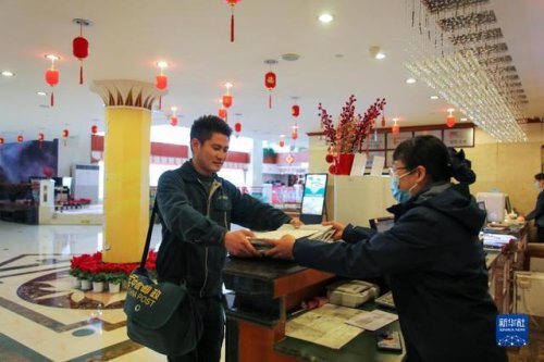 2月1日,謝菲俊將報刊等郵件投遞到山上賓館工作人員手中。