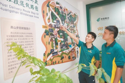 蓋滿10枚黃山風(fēng)景區(qū)紀(jì)念郵戳的明信片,當(dāng)天都會(huì)乘著郵遞員的背包下山,再飛散到世界各地。