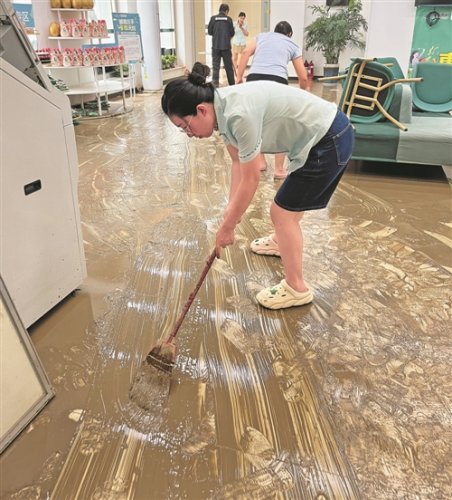 8月4日,涿州郵政范陽路營業所全體員工到崗,合力清理網點淤泥,當天上午網點恢復營業。□張宇梅 攝