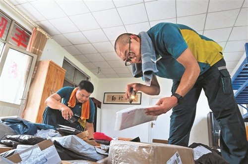 隨著農(nóng)村電商的發(fā)展,許桂明攬收的電商包裹也越來越多。