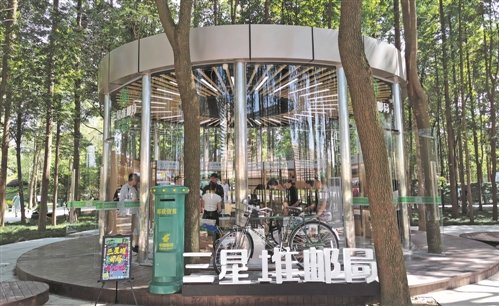 7月28日,位于四川省廣漢市的三星堆郵局開業(yè)試運行。三星堆郵局坐落于蒼翠的樟木林中,采用通透的圓形玻璃房設(shè)計,將“郵政綠”與“青銅綠”巧妙融合,與鄰近的三星堆博物館新館相映成趣。