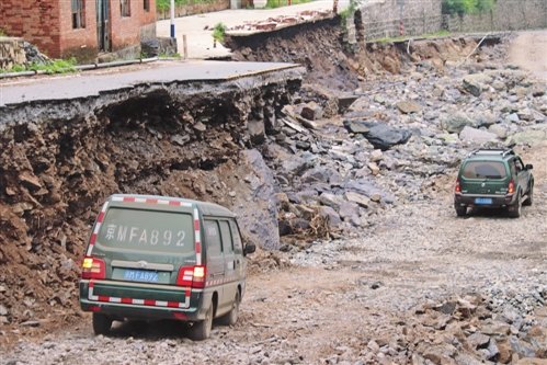 目前,受災地區只有持救災通行證的車輛才可以通行。進入受災地區后,可以看到路面清障工作基本完成,小型車輛可以通過,但受災情況嚴重,泥石流、塌方隨處可見,部分房屋受損;臨水道路多數受損,有時甚至要在河床上臨時夯出的土路上行駛;在危險路段,由領航車在前方探路排障,確認安全后,再指揮郵車通行。受災地區一些交通標識被沖毀,通信訊號也未完全恢復,加之部分道路受阻必須繞行,司機只能依靠經驗和離線地圖辨別方位,每一步都是未知。