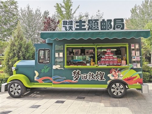 蘭州的西大門——河口,是黃河上游四大古渡之一。近年來,河口古鎮被評為第七批“中國歷史文化名村”、甘肅省“歷史文化街區”等。蘭州市郵政分公司因勢利導,在古鎮上創建了“河口古驛”主題郵局。距此千里之外的敦煌,同樣也設立了敦煌夜市主題郵局,每當燈火輝煌時分,來到敦煌的游客沐浴著清涼的晚風漫步于此。琳瑯滿目的文創產品,獨具特色的郵品和美麗的紀念戳、風景戳,讓人們近距離體驗了郵政文化、敦煌文化的魅力。