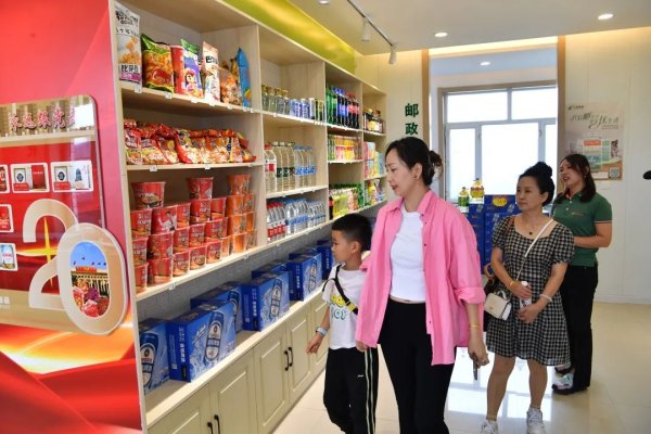 服務(wù)站的占地面積不大,卻功能俱全,站里設(shè)有特色農(nóng)產(chǎn)品、包裹代收投、小園地組貨、文創(chuàng)、郵生活積分兌換、大單品和快消品、農(nóng)資產(chǎn)品七大區(qū)域,此外還有直播間、金融工作室和黨建有聲讀書墻。“站里疊加的業(yè)務(wù)越來越豐富,不僅成為游客的打卡地,更是村里人最關(guān)注的地方。”服務(wù)站負責人朱文彬指著特色農(nóng)產(chǎn)品區(qū)的烤鴨蛋和石板大米告訴記者,這是村里最有名氣的兩款產(chǎn)品,在郵政電商直播中,也是賣得最好的。剛好當天有一場直播,她邀請記者一同參加。