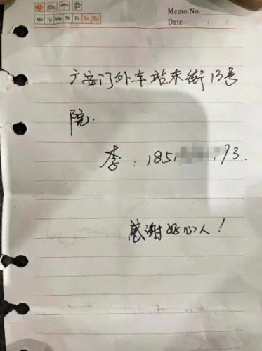 “這個(gè)是業(yè)主給你的,抽空回個(gè)電話。”前兩天,西城區(qū)郵政分公司馬連道攬投部高輝收到小區(qū)物業(yè)保潔人員遞來(lái)的一張紙條,上面寫(xiě)著“感謝好心人!”,還留下了一個(gè)地址和一串電話號(hào)碼。高輝以為是用戶想要查詢郵件,沒(méi)想到電話撥通后,用戶竟非要見(jiàn)他一面,讓他等在原地千萬(wàn)別走。