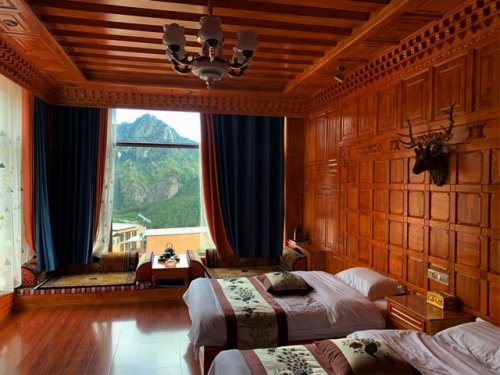 走進(jìn)甘肅省甘南藏族自治州迭部縣扎尕那村,云霧環(huán)繞在山腰、陽光映射在石壁上五光十色,民宿中更是開窗便能見到如詩如畫的景色。