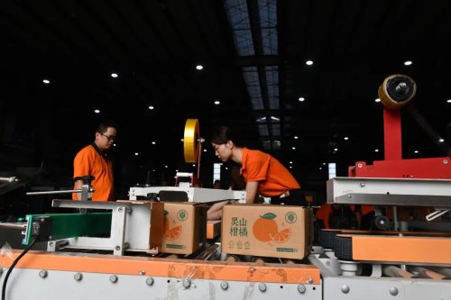 “在我們這條20多米的分揀線上,可以根據(jù)客戶要求設(shè)置果徑、重量等參數(shù),精準(zhǔn)篩選每一枚水果,大大提高了分揀效率?!比妻r(nóng)業(yè)副總經(jīng)理劉翔介紹說。場地另一側(cè),剛剛分揀好的水果被放上皮帶傳送機(jī),郵政工作人員隨即將其裝車發(fā)往全國各地。