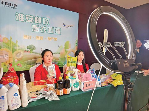江蘇淮安郵政開展“年貨節”直播。 □陳俊 攝