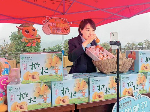 郵政主播直播帶貨農產品。 □薛婷 攝