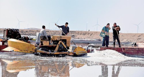 王海進(jìn)在鹽場(chǎng)投遞途中。