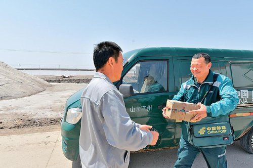 濱州位于山東北部,因?yàn)l臨渤海而得名。濱州市無棣縣北部沿海地區(qū)自古以鹽為業(yè),全縣40多萬畝鹽田星羅棋布。這里的4個(gè)郵政網(wǎng)點(diǎn)、36個(gè)自提點(diǎn)、23個(gè)便民站,服務(wù)45個(gè)村、72家企事業(yè)單位,包括鹽場(chǎng)工人、漁民等共計(jì)12.2萬人。