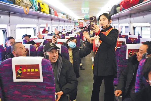 對(duì)于江蘇、上海及周邊地區(qū)的數(shù)以千計(jì)的務(wù)工人員來(lái)說,此次G9285次列車是一趟特別的列車。舒城縣郵政分公司連續(xù)第6年舉辦“春運(yùn)郵情情暖江淮”活動(dòng),聯(lián)合縣公共就業(yè)和人才服務(wù)中心、皖浦皖籍農(nóng)民工工作服務(wù)站等單位,包下一列高鐵專列,始發(fā)站為上海站,途經(jīng)昆山、蘇州、無(wú)錫,免費(fèi)帶著862名在長(zhǎng)三角地區(qū)務(wù)工的老鄉(xiāng)直達(dá)舒城。