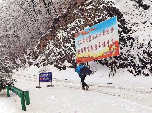 2月4日,地處鄂西北邊陲的湖北口鄉厚雪積壓,地面結冰,湖北省十堰市鄖西縣郵政分公司湖北口支局投遞員李善記堅持徒步進村為村民投遞郵件。□周曉瑜 王嫣 攝影報道