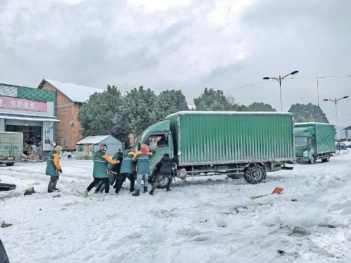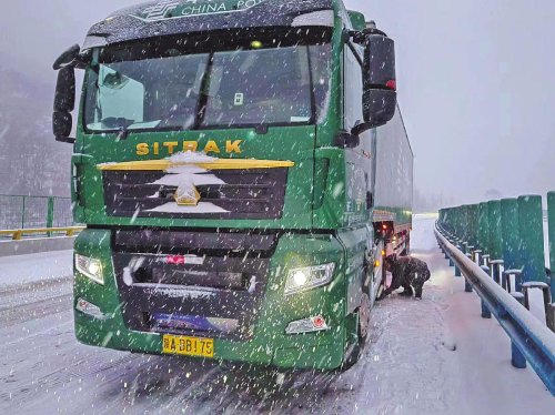 陜西省西安郵區中心駕駛人員給郵車加裝防滑鏈,帶上方便面、牛奶等應急食品及保暖被袋,冒著大雪和低溫出班,將郵件安全送達目的地。□王儀 徐策 攝影報道