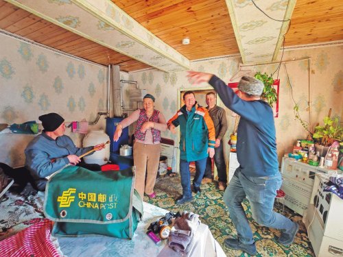在養蜂戶的家中,主人熱情邀請鄉郵員共舞一曲。□呂文禮 攝