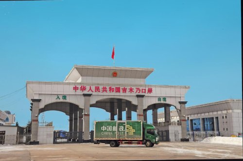裝滿跨境電商貨物的郵車從吉木乃口岸駛過。□簡晴晴 攝