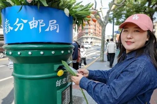 活動(dòng)現(xiàn)場(chǎng)不僅設(shè)置有“明信片墻”,更是將綠色郵筒打造成了春意滿滿的“郁金香花筒”,一時(shí)間吸引了眾多市民、游客打卡拍照,大家進(jìn)入郵局后領(lǐng)取明信片書(shū)寫(xiě)、貼郵票、蓋紀(jì)念戳、郵寄,用這種方式共同傳遞上海春日的美好。