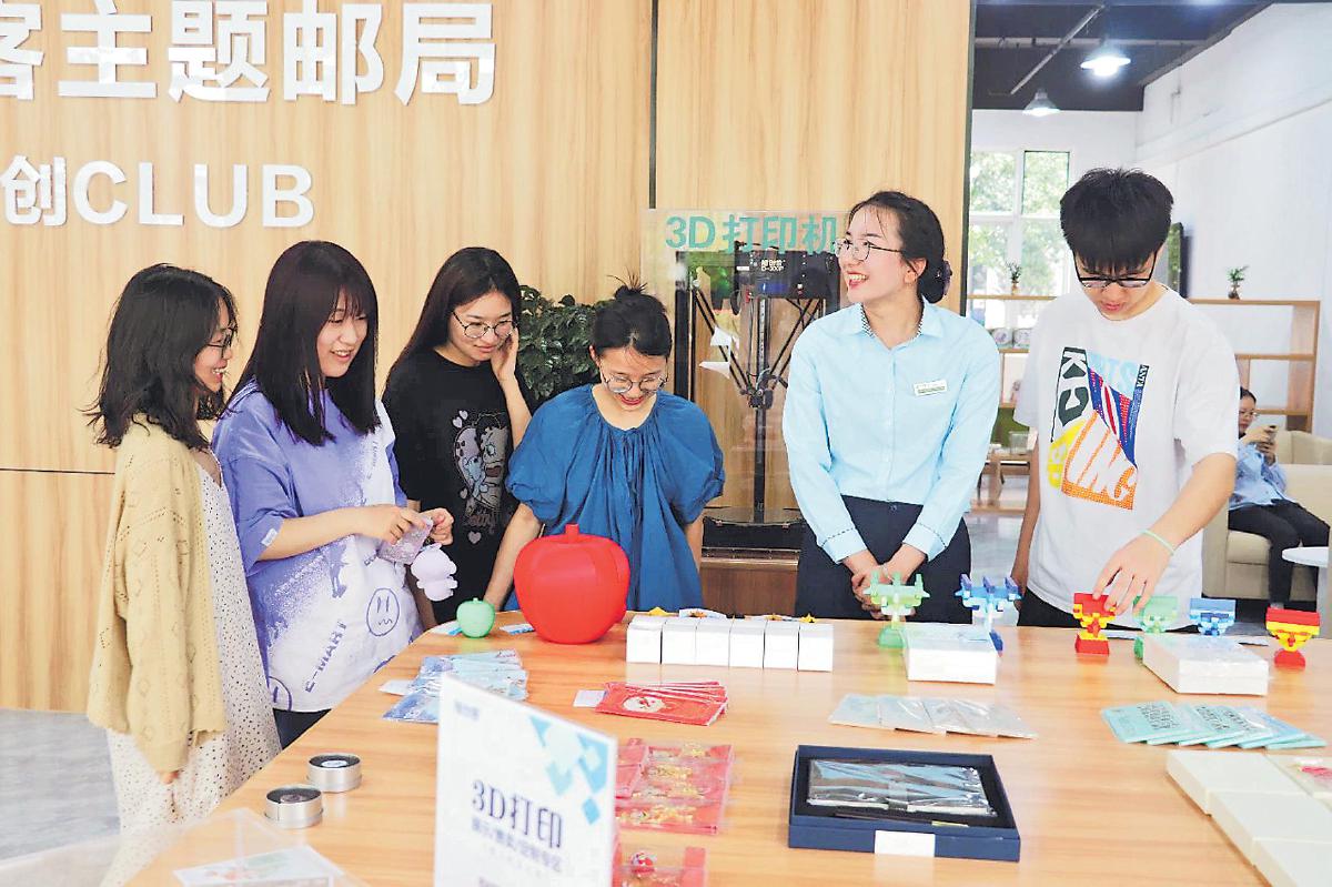 常熟理工學院學生在校園創客主題郵局參觀、咨詢。