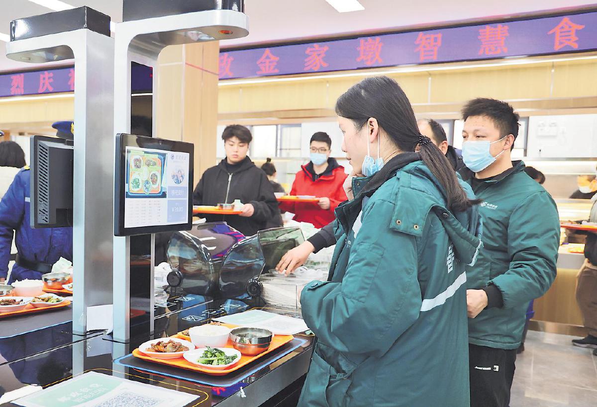 “走,去‘靠臉’吃飯!咱們新食堂環(huán)境一流,支付也特別方便,投遞歸班能吃上美味的熱飯熱菜,真是太幸福了!”近日,湖北省武漢市江漢區(qū)郵政分公司金家墩攬投部的攬投員在金家墩智慧食堂挑選好喜歡的菜品后,來到支付設(shè)備前,通過人臉識(shí)別“秒付”餐費(fèi)。享受到便捷的就餐體驗(yàn),大家紛紛表示,在新食堂吃得可口、吃得方便、吃得舒心,工作更有干勁了。
