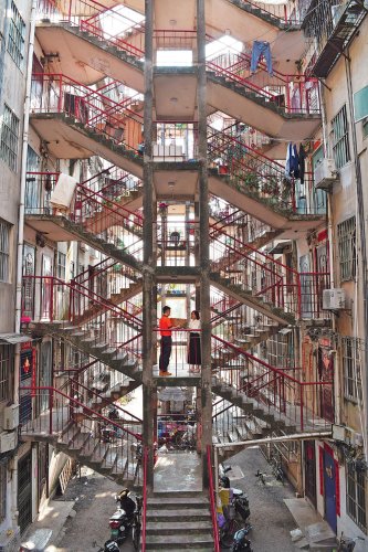 南寧市郵政分公司投遞員在鴛鴦樓投送郵件。□中國郵政報記者 賈紅偉 攝