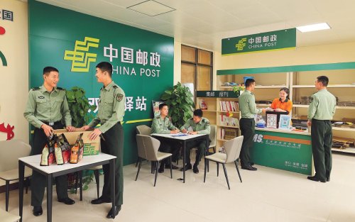 崇左市郵政分公司員工在憑祥軍郵驛站服務部隊官兵。□唐波 攝