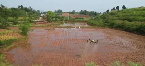 植保無人機(jī)撒下秧田除草劑。郵儲(chǔ)銀行重慶分行供圖