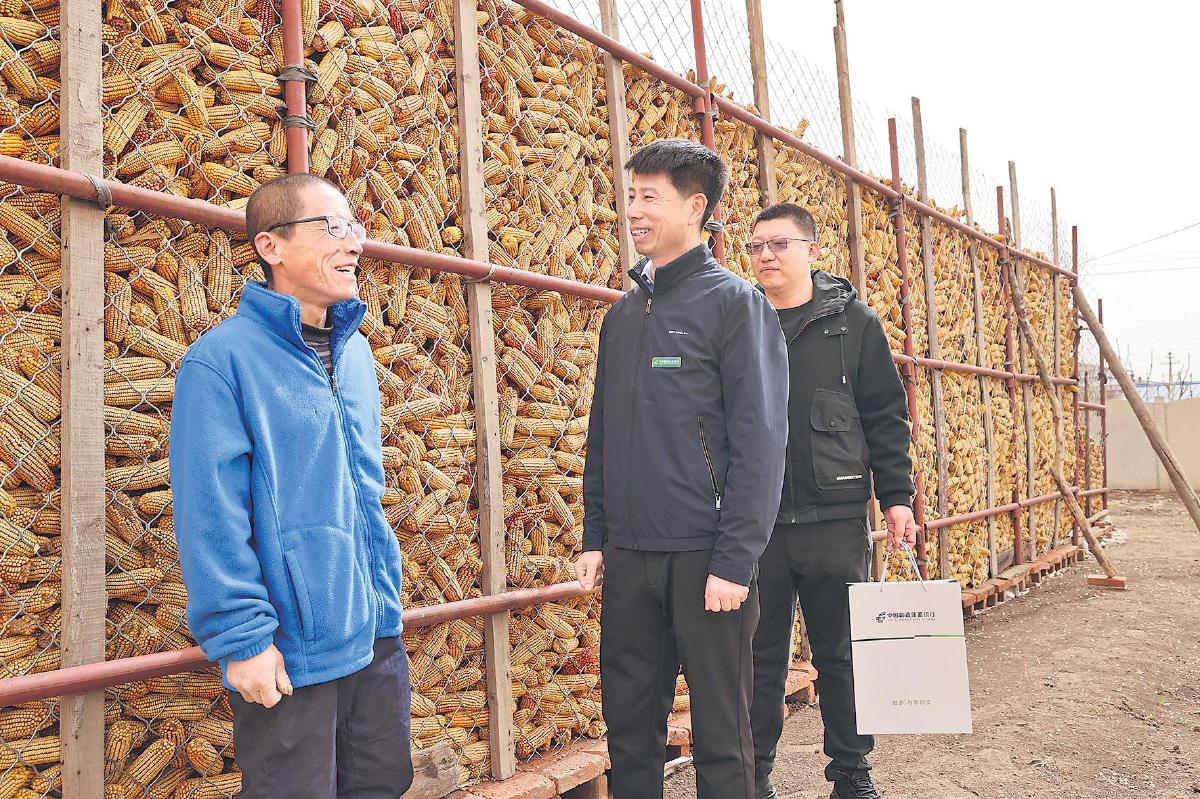 吉林公主嶺市支行營業部客戶經理走訪農戶,了解資金需求。□林豐柏 攝