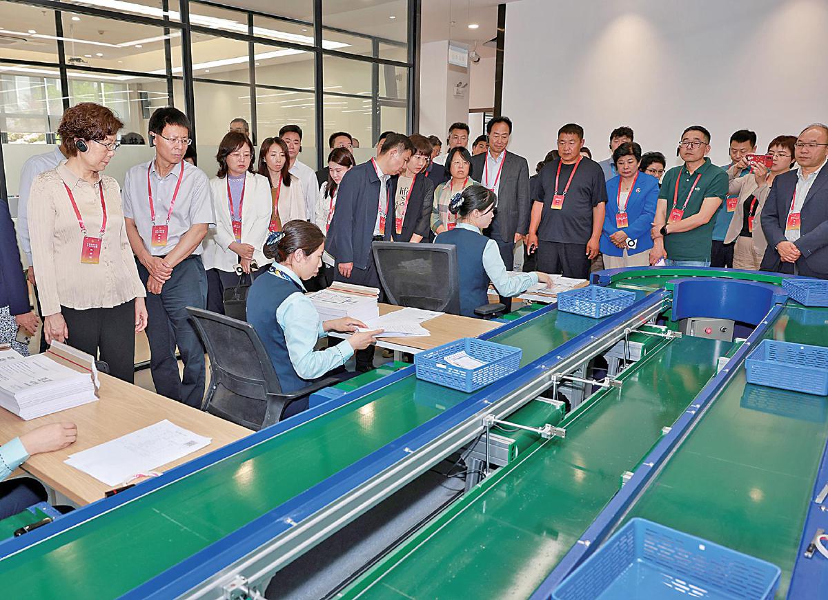 5月13日上午,來自北京、天津、河北、江蘇、山東5個省(市)的部分全國人大代表來到“江蘇法郵集約化服務中心”,先后視察法院集中送達中心、集中編目中心、12368訴訟服務熱線中心等工作區域,詳細了解了運營模式、服務流程、創新成效等。