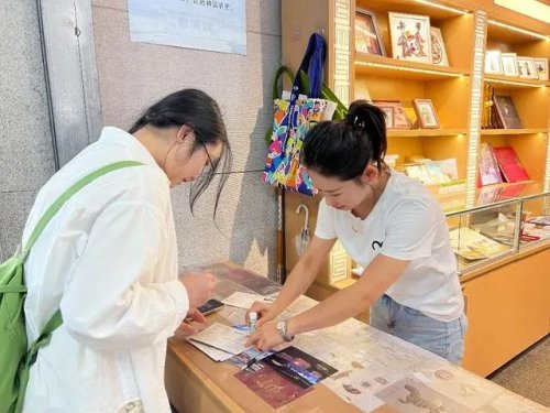 在陜歷博絲路驛站主題郵局,兩名從武漢來的“00后”大學(xué)生徐睿和李芷涵,也發(fā)現(xiàn)了驚喜。徐睿說:“我們是學(xué)藝術(shù)設(shè)計(jì)的,剛剛在樓上參觀時(shí),看到了難得一見的半壁仕女圖,沒想到在樓下就發(fā)現(xiàn)了仕女圖的特種郵票。特別開心!”