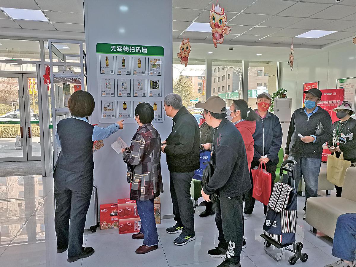 長春郵政在營業廳設置無實物掃碼墻,方便會員在線選購商品。□吳巖 攝