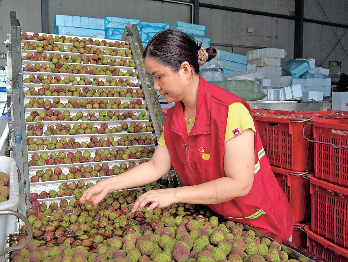 海口郵政派駐工作人員對荔枝進行質量把關。