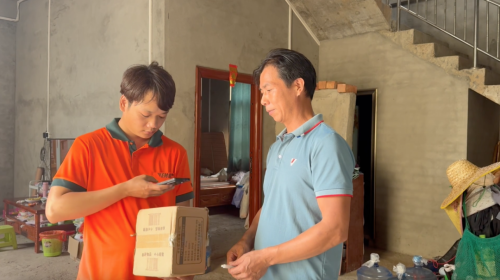 采訪間,正趕上油隘村板新屯村民張美和來(lái)取件,她還順便買(mǎi)了點(diǎn)釀酒的原料。經(jīng)常網(wǎng)購(gòu)的她說(shuō)郵政包裹以前是送到鎮(zhèn)上,需要騎摩托車(chē)去取,現(xiàn)在直接從家里過(guò)來(lái),幾分鐘就拿到了,很方便。