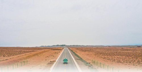5月22日,采訪組乘坐汽車趕往馬鬃山鎮(zhèn)。215國道沿途的戈壁荒漠給人以遼闊、壯麗、肅穆、深邃的感覺。驀然間,一抹亮麗的綠色浮現(xiàn)眼前,是前往馬鬃山鎮(zhèn)的郵車!在這荒涼的戈壁灘上,中國郵政沒有缺席。