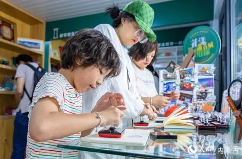 6月18日,游客在呼和浩特市玉泉區(qū)塞上老街旅游休閑街區(qū)“塞上主題郵局”內集章打卡,珍藏“獨家記憶”。