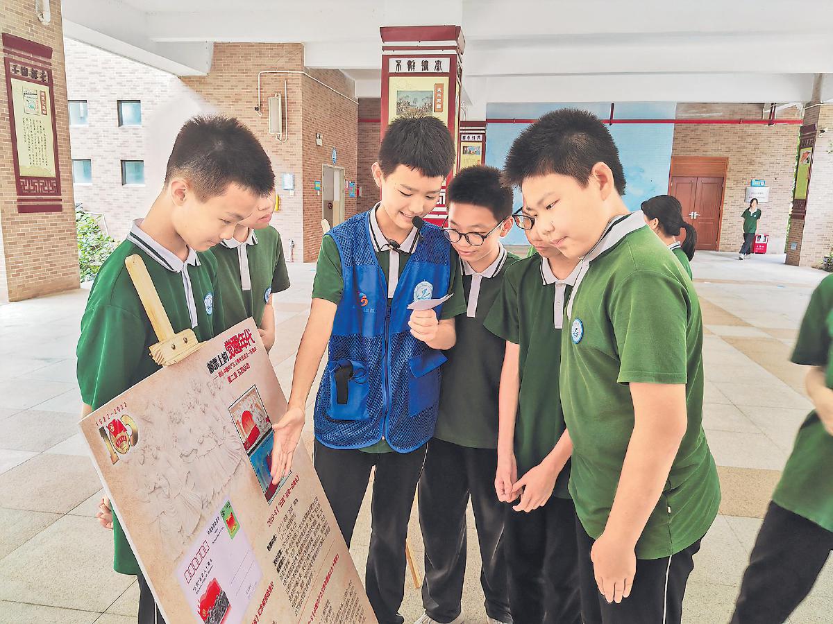 《覺醒年代》主題郵展走進遠洋學校。 □歐朝成 攝