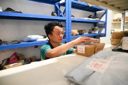快遞抵達(dá)后,超市老板商興菊按照手機(jī)尾號(hào)把快遞分揀在貨架上。這家超市每天營(yíng)業(yè)時(shí)間從早上六點(diǎn)至晚上十一點(diǎn),村民在外干完農(nóng)活可以隨時(shí)到超市免費(fèi)取快遞。