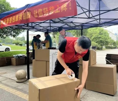 考慮到在校學生對學校和畢業(yè)生的情況都更熟悉,今年在郵校雙方合作基礎上,徐州郵政與學生會強化聯(lián)系,在駐點收寄期間,提供社會實踐名額,協(xié)助郵政人員進行校園包裹宣傳引導,拉近服務距離,提升收寄效率。據(jù)徐州郵政校園寄遞負責人楊兆清介紹,他們在此基礎上創(chuàng)新了郵校“1+1”駐點服務模式,即在每棟宿舍樓下安排1名郵政人員和1名學校的實習生,提供各類咨詢和搬運服務等。