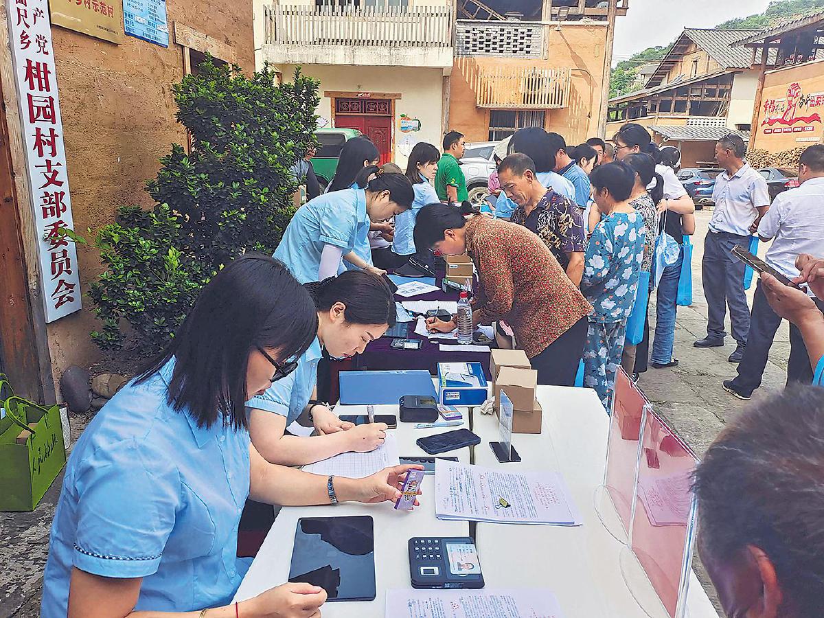 巫山郵政送普惠金融進村,為果農辦理金融業務。