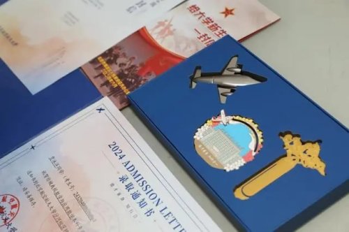 啟封北航2024年本科生錄取通知書,首先映入眼簾的是封套的北航藍,封面上燙金的背影則代表著所有北航新生即將開啟人生的金色新篇,實現(xiàn)手可摘星辰的夢想。翻開內(nèi)封,校訓(xùn)“德才兼?zhèn)洌泻弦弧笔撬徒o新北航人的第一句囑托。