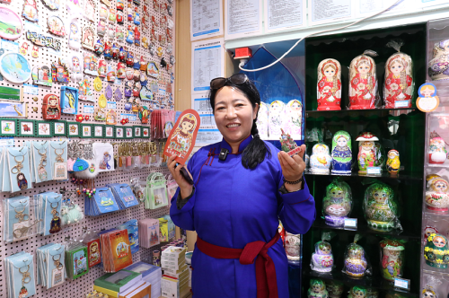 7月25日一大早,采訪組一行到達位于中俄邊境的滿洲里第五代國門。在位于國門景區(qū)的入口處,占地200多平方米的滿洲里國門主題郵局格外吸睛。進入主題郵局,映入眼簾的是各類多巴胺色的文創(chuàng)產(chǎn)品,其中一款“綠皮火車穿越國門”圖案的冰箱貼凸顯地標特色,尤其受到游客歡迎。該主題郵局負責人項欣說:“我們主題郵局里有郵品、文創(chuàng)產(chǎn)品、特色食品等500多種產(chǎn)品,以國門為主題的文創(chuàng)產(chǎn)品和鄂溫克族手工藝品非常受游客喜愛?!?/p>